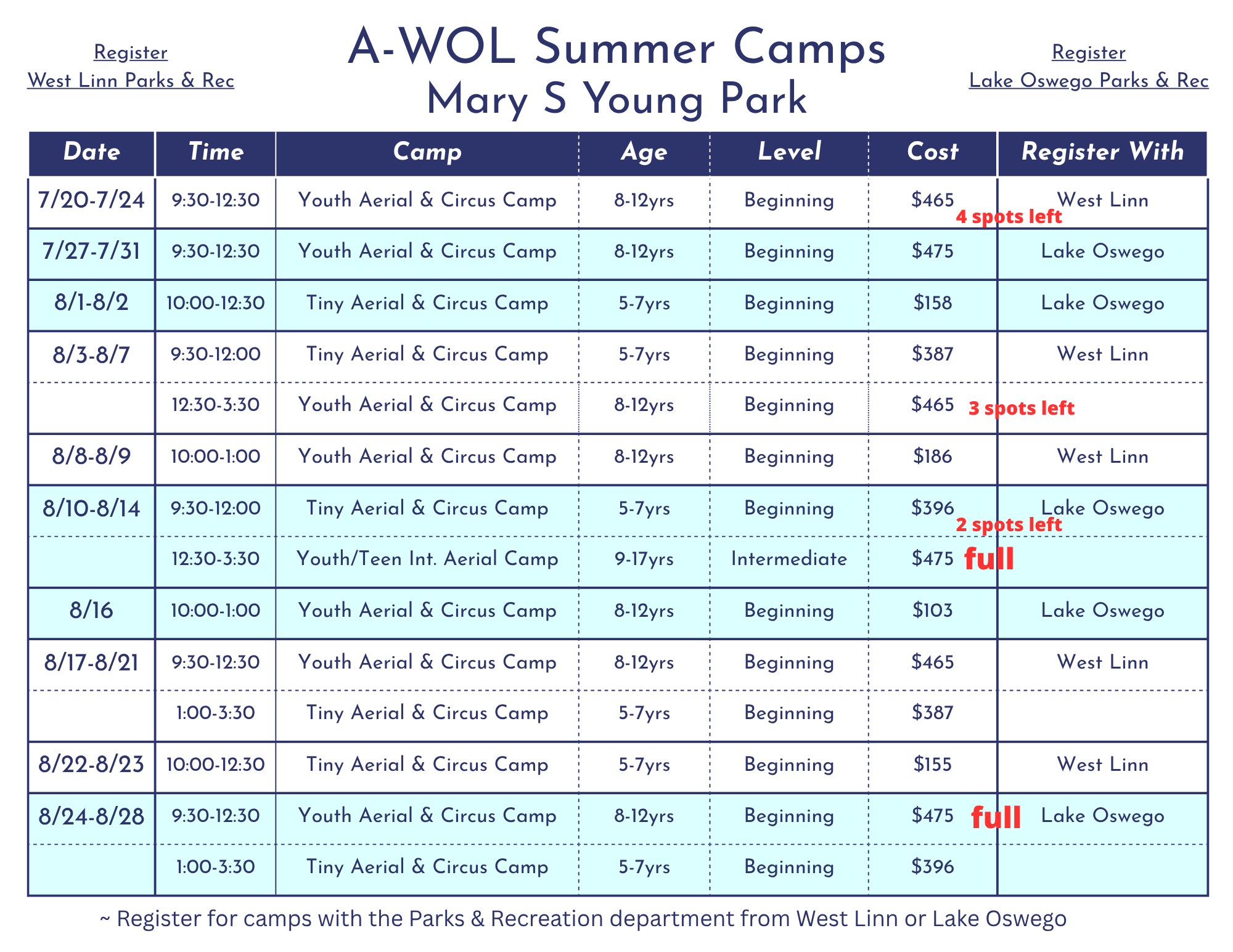 Click the link below and filter to “Summer Camps” and “AWOL”